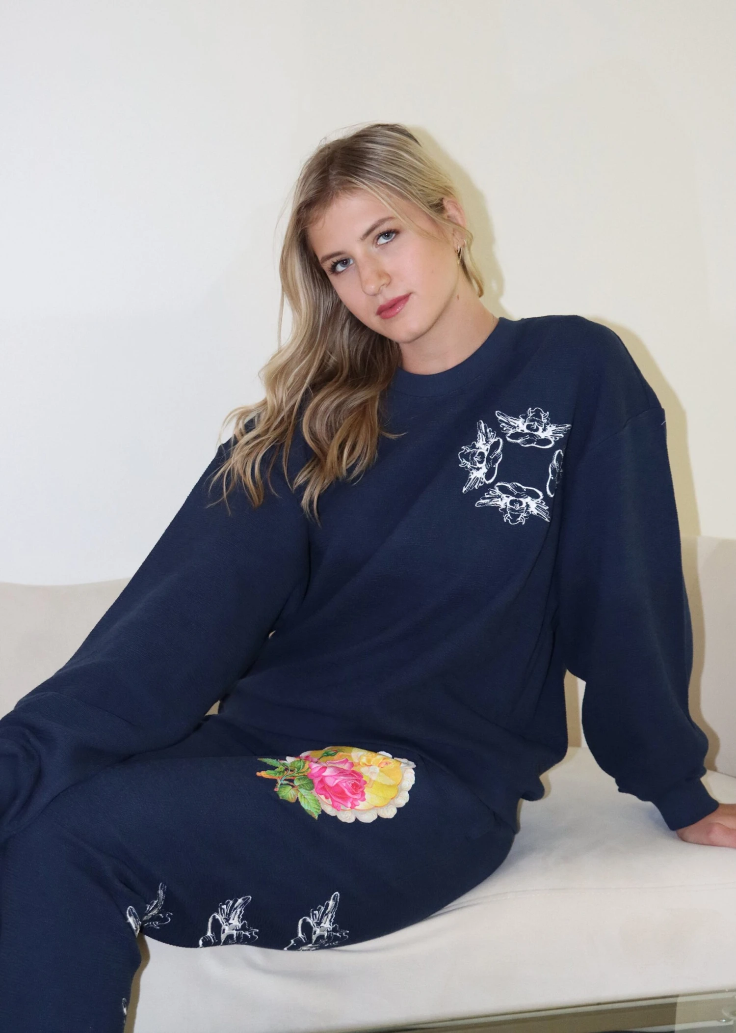 This oversized crewneck is a lightweight fleece material with a Boys Lie angel graphic on the front and a vibrant floral graphic on the back. Wear this crewneck with the matching sweatpants or a pair of jeans for a cool, casual look!