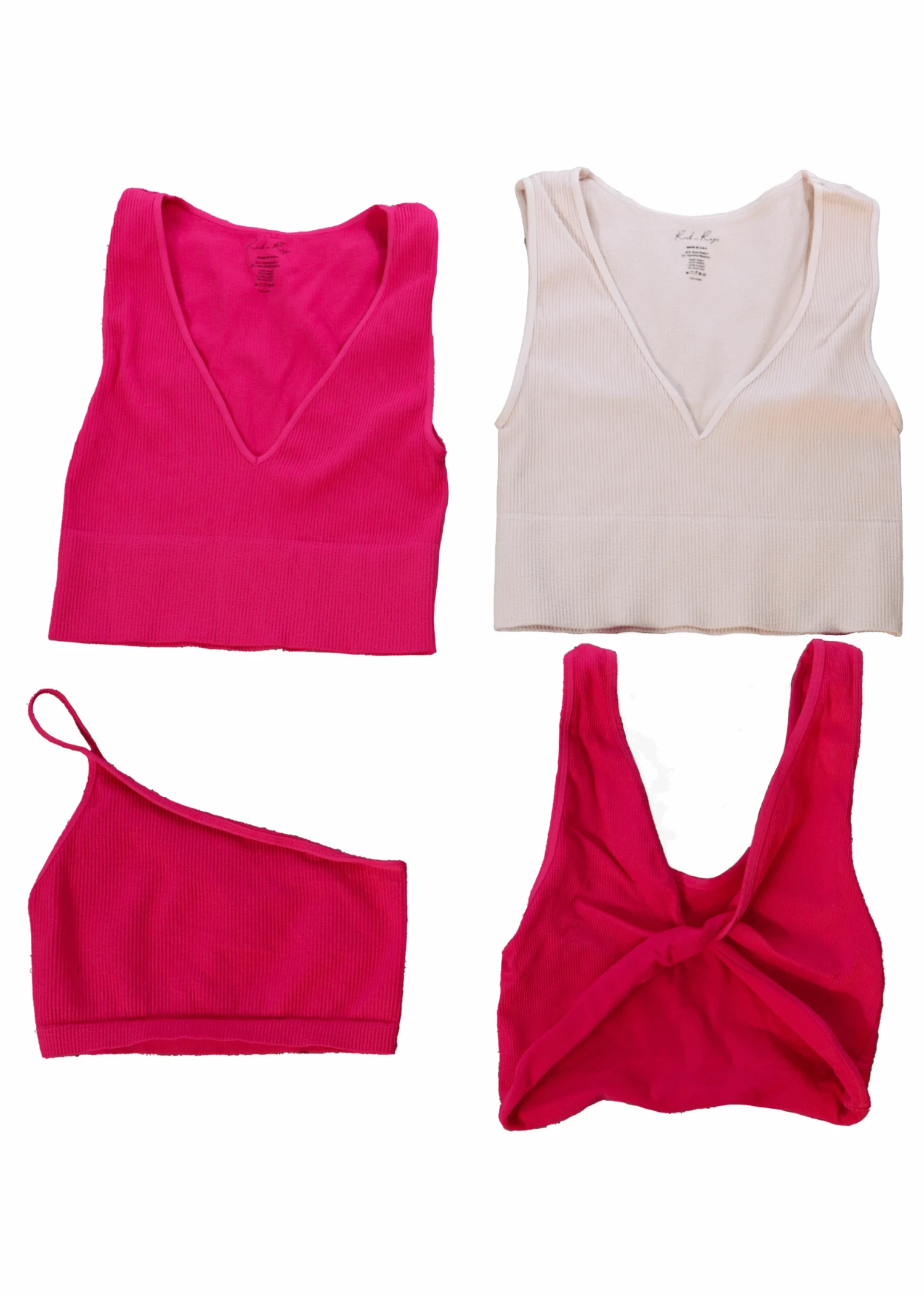 You’re not going to want to miss this! Your favorite tanks are now in a bundle for a LIMITED time only! This bundle includes Take The Plunge Crop Tank in Hot Pink and Light Pink, Twist And Shout V2 Tank in Hot Pink & Shoot Your Shot One Shoulder Tank in Hot Pink!