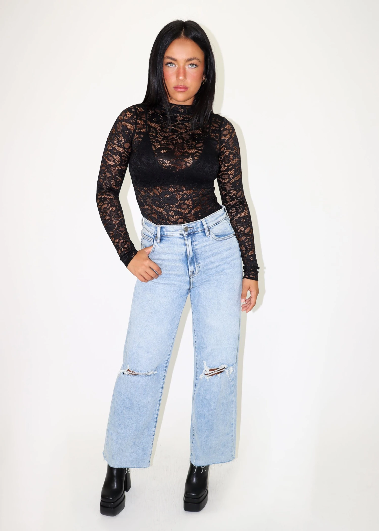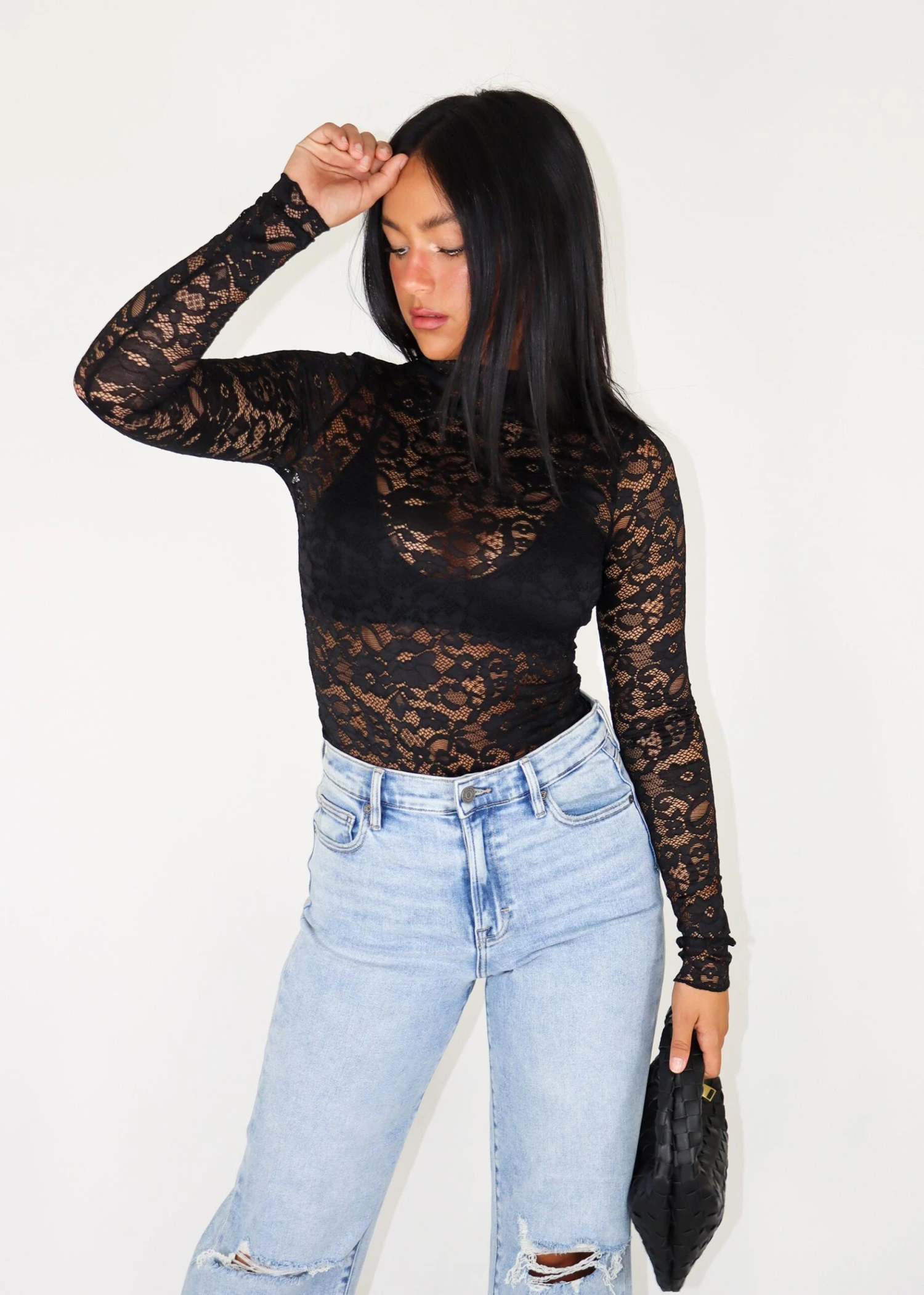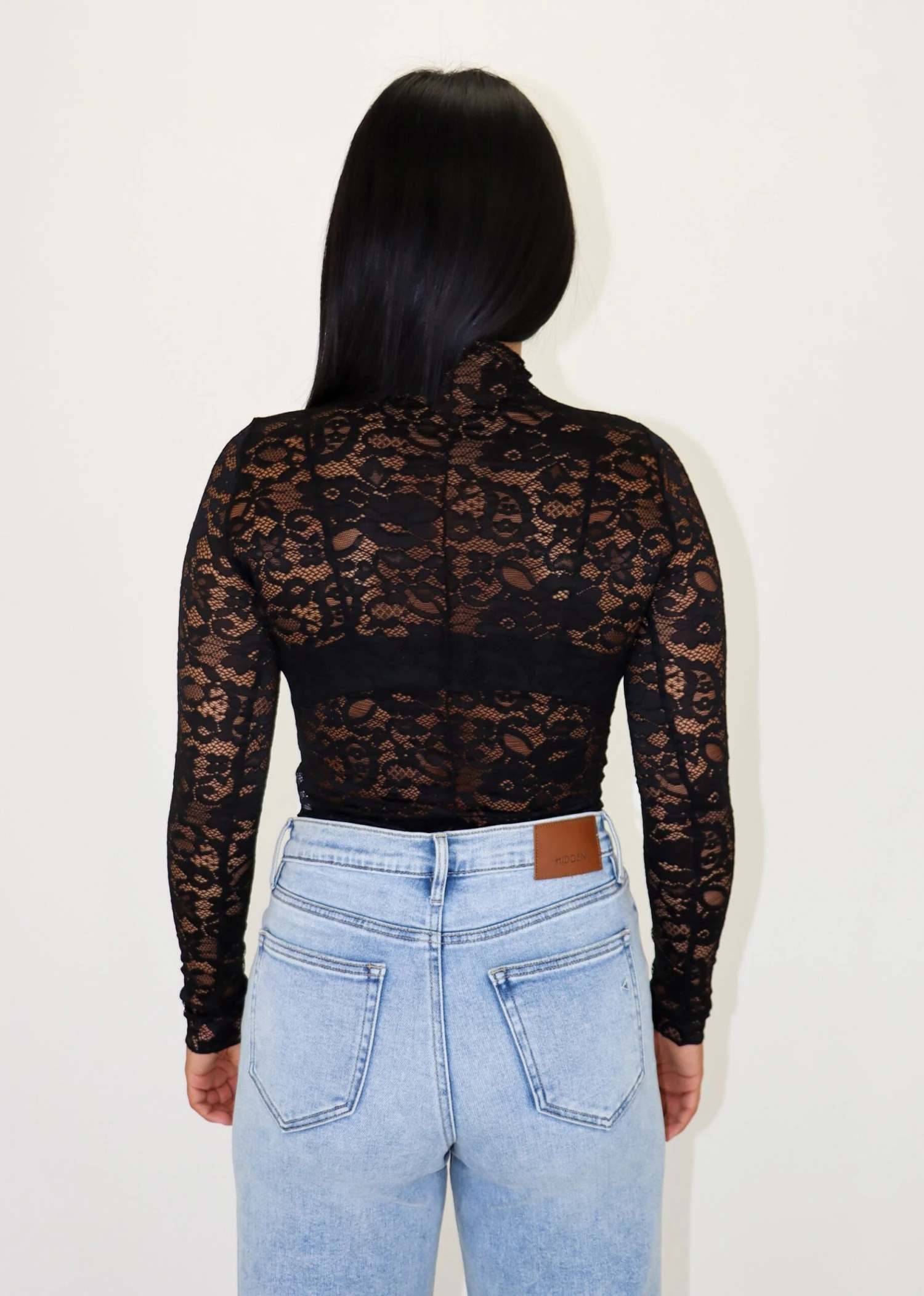 This sheer lace long sleeve top elevates any outfit. It features a mock neck and a sheer material that is perfect for layering or styling on its own. Pair this with leather pants or a skirt for the perfect night out look.