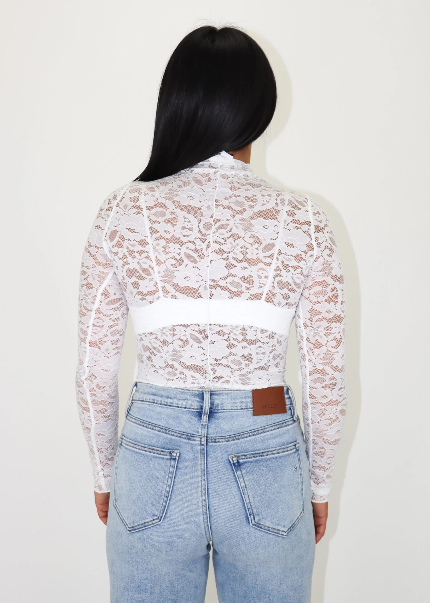 This sheer lace long sleeve top elevates any outfit. It features a mock neck and a sheer material that is perfect for layering or styling on its own. Pair this with leather pants or a skirt for the perfect night out look.