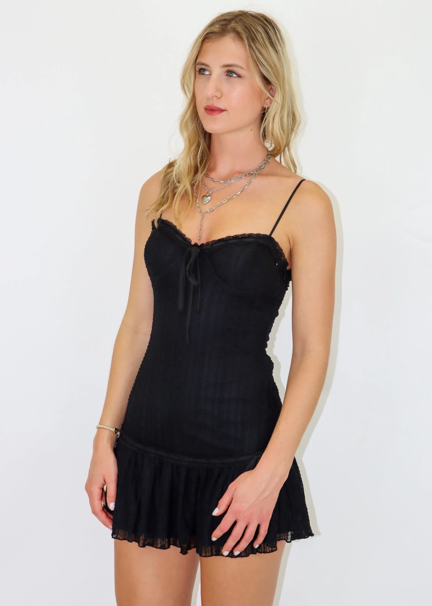 This black dress is the perfect statement piece to add to your dress collection! It features a drop waist peplum that looks flattering on anyone. We are obsessed with the trendy ribbon detail. Pair with kitten heels for the perfect look.